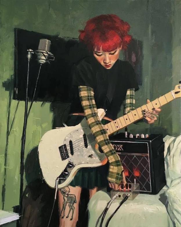 Setting up to play her music,