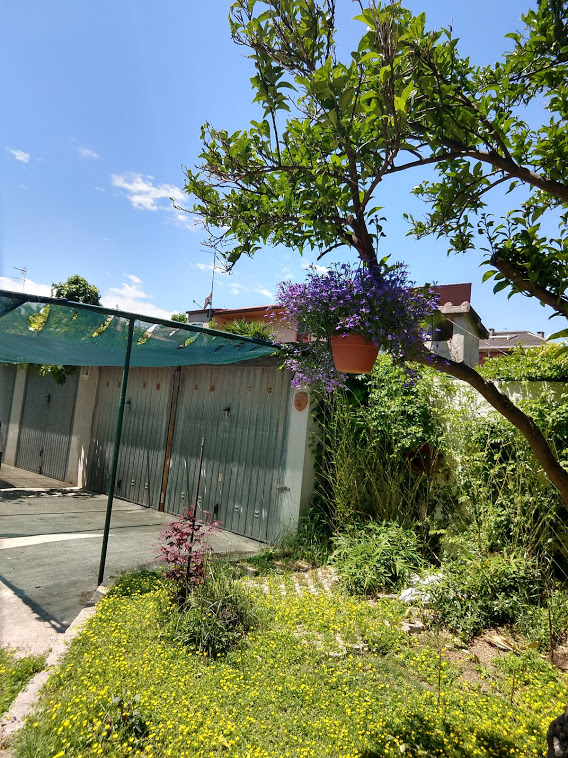Part of what made this Italian adventure so special was the wonderful apartment we rented from an Airbnb super host. It was a clean abode in a peaceful area, so quiet at night, just as we have at home. It had a beautiful yard, with lovely flowers. Italy is different from Portugal and Spain, in terms that it has the same dense housing, but it seems that in Italy, people place houses wherever they can, as noted below from our balcony.