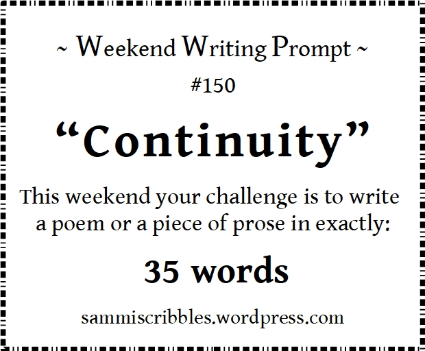 Written for the Weekend Writing Prompt #150 from Sammiscribbles: Continuity in exactly 35 words.