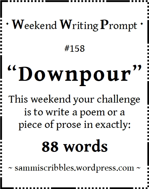 Written for the Weekend Writing Prompt $158 from Sammiscribbles. The prompt is Downpour in 88 words exactly. Word of the Day Challenge is Tedious.