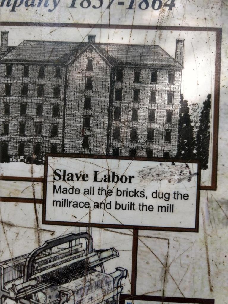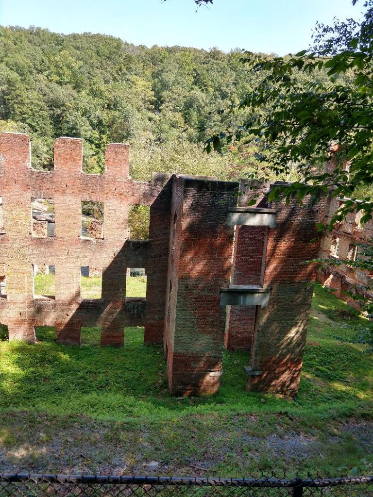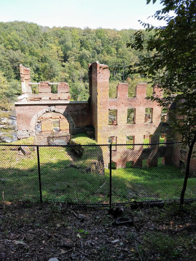 We trudged on, both sweating and wishing for water, but we stopped to admire the old mill and the historical markers that told the story of the businesses that were at one time prominent at this location. Bushes jabbed at us, as I worried about ticks and poison ivy, neither of which we encountered.