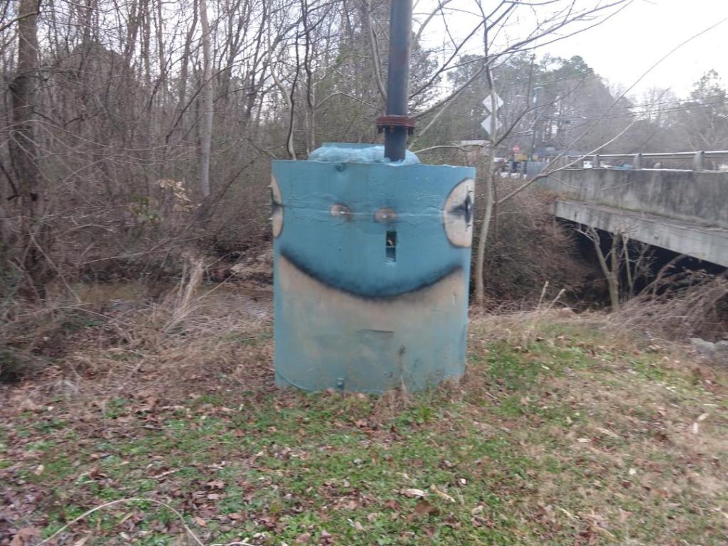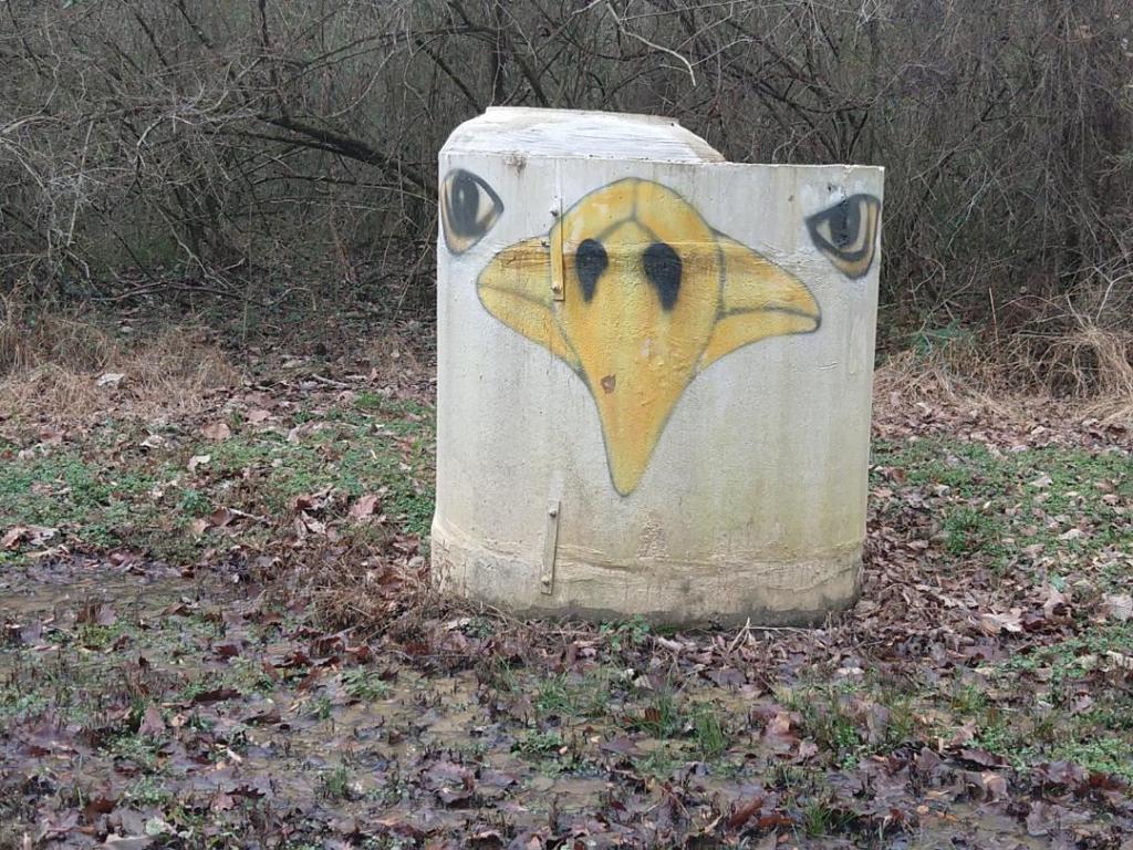 We walked nearly six miles on the day we tried this path, adding the extra mileage to the three miles round trip by completing other parts of the original trail. There were on this walk some strange and wonderful lineaments, namely storm sewer accesses (we think) that had paintings of animals. I kept walking to see them all.