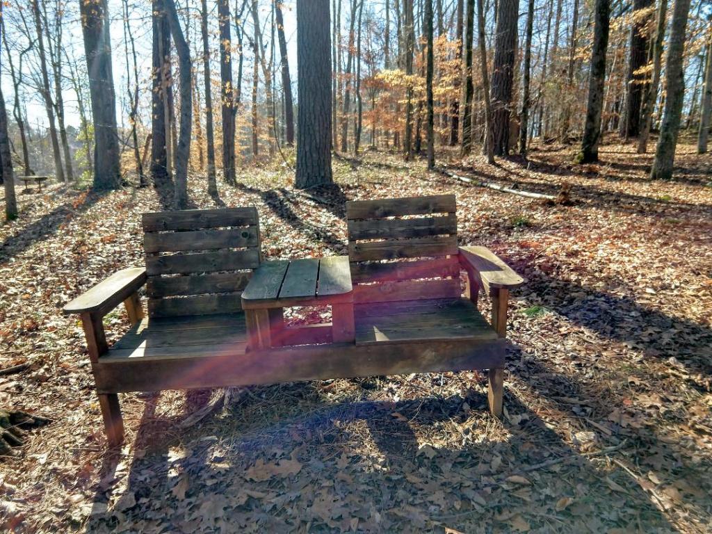 I took these photographs for the Pull Up A Seat Challenge Week 3 from XingfuMama. I wanted to show the unusual seat in the middle of a disc golf park and the view from it. I have never seen a double seat at any of the disc parks where I accompany Douglas so he can play and I get some exercise and time together. All that;s missing is a pizza and cold drinks.