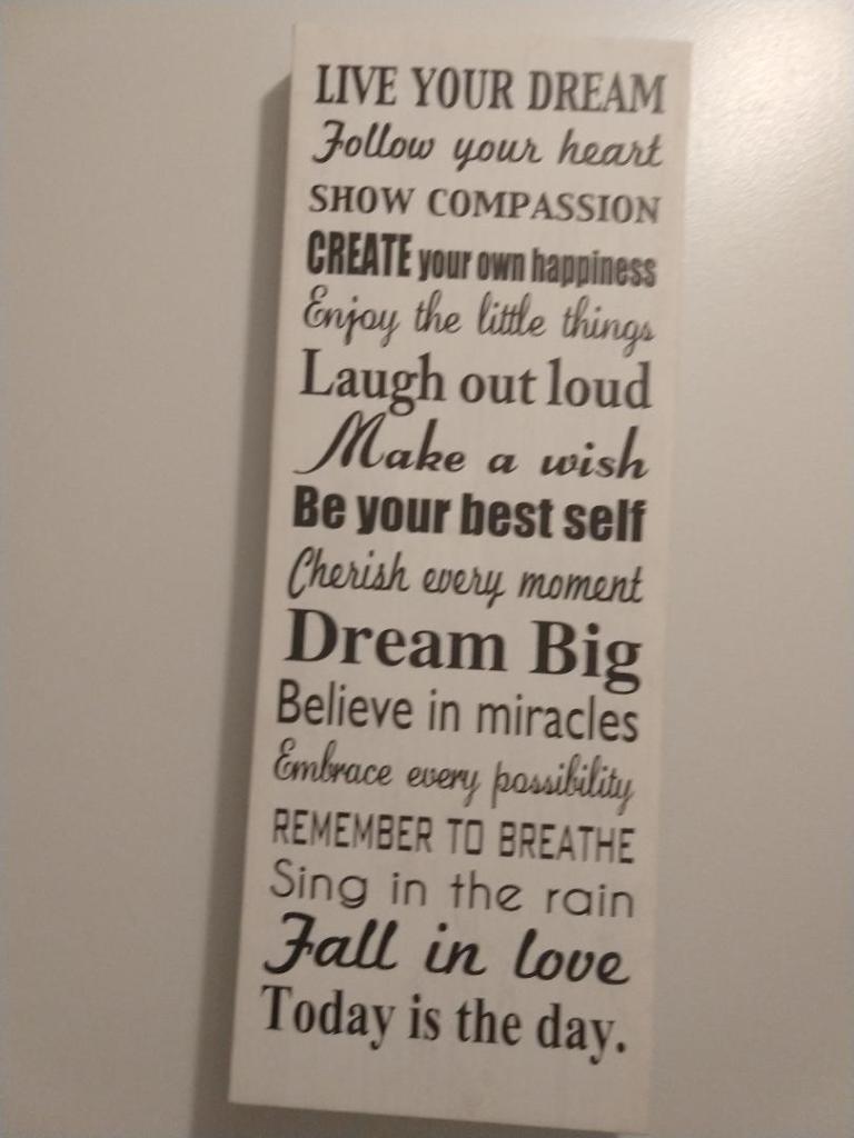 One of the first lessons that she taught me was to not obsess about the numbers on the scale. She told me that I could be 125 pounds and wear a size eight, or work on buliding muscle and strength and be 125 pounds in a size four or six. She really emphasizes fitness over the BMI or weight, and she stresses believing in what you can accomplish. Her boards are full of inspirational sayings that help motivate her clients. Her motto is “Your health is yourwealth!”
